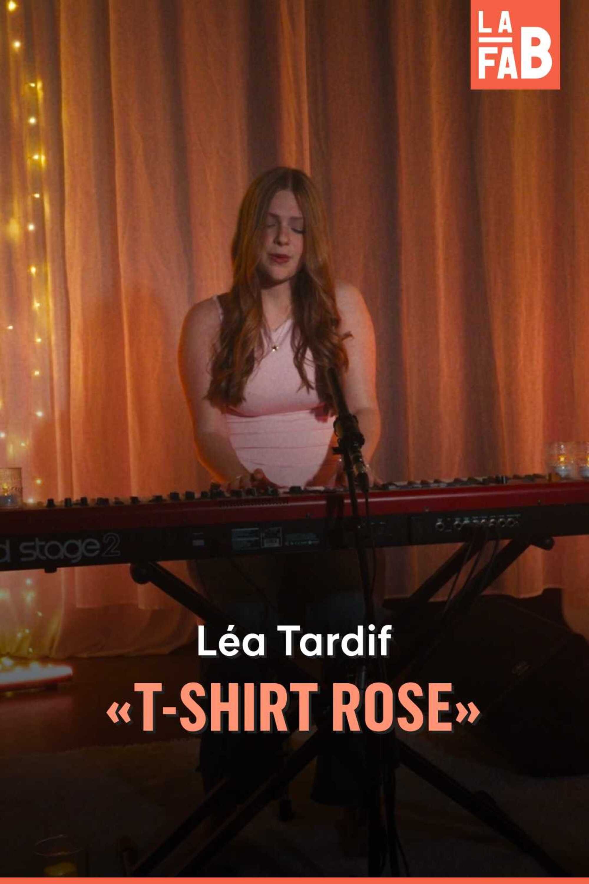 C'est au Studio 13, un espace de cocréation situé à Lennoxville, que Léa Tardif nous interprète sa chanson «T-shirt rose», une composition issue d'un atelier qui s'est tenu au Camp chanson de Petite Vallée. La chanteuse a remporté cet enregistrement après avoir reçu la reconnaissance du jury du prix Coup de coeur Télé-Québec pour sa prestation très touchante et authentique de même que pour le message universel qu'elle a livré lors de la dernière édition de Secondaire en spectacle. Léa souhaite ardemment poursuivre une carrière en musique, ce véhicule puissant qui lui permet d'exprimer les émotions qu'elle n'arrive pas à extérioriser autrement.
